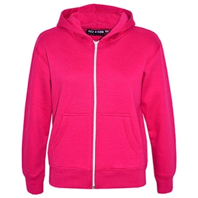 A2Z 4 Kids Girls Boys Classic Plain and Tie Dye Print Soft Fleece Full Zip Up Hooded Zipper Pink 9 10