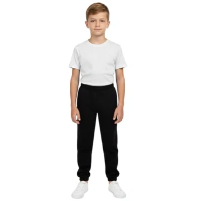 IDEAL: Introducing our joggers that offer a trendy urban streetwear style. They are great to wear under your favourite outfit or to mix and match for your unique look. They are comfy, soft, breathable, and durable, made from polyester and cotton fleece. Perfect for year-round wear, these trousers are ideal for school activities and PE and pair well with a variety of outfits, including tank tops, hoodies, t-shirts, coats, and denim jackets. HIGH-QUALITY FLEECE TROUSER: These high-quality fleece trousers are made from a blend of 65% polyester and 35% cotton for the black colour option and 50% polyester and 50% cotton for the red, navy, and blue options. The jogging bottoms feature a contrast waistband and an elasticated waist for added comfort, allowing for ease of movement and a snug fit throughout the day. COMFORT: Every parent wants their child to feel secure and comfortable no matter what they are doing. Our Kids PE joggers trousers are crafted specifically to prioritize your little ones safety and comfort. These pull-on sports pants are effortless for boys and girls to wear, featuring an elastic waistline thats ideal for outdoor games, school activities, or everyday wear. OCCASION: These versatile boys and girls trousers are ideal for year-round wear, suitable for various occasions ranging from school uniforms to everyday wear. Offering both comfort and style, these trousers can be worn alone or paired with various clothing items such as T-shirts, sweatshirts, jumpers, sweaters, coats, collared shirts, and sneakers. Perfect for outings, trips, or leisure activities, they provide exceptional comfort for any occasion. AVAILABILITY: Simplicity meets sophistication with our range of timeless colours: Red, Navy, Blue, Black, 2 Pack Red, 2 Pack Navy, 2 Pack Black and 2 Pack Blue. AVAILABLE SIZE: 5-6 Years, 7-8 Years, 9-10 Years, 11-12 Years and 13-14-14 Years.