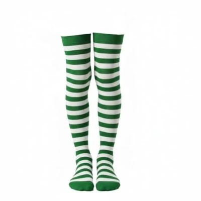 A2Z 4 Kids Girls Boys Striped Stockings Green & White Halloween Fancy Dress Accessory Over Knee Socks Soft Stretchy Polyester Witch Clown Pirate Theme Wear for 14 Years