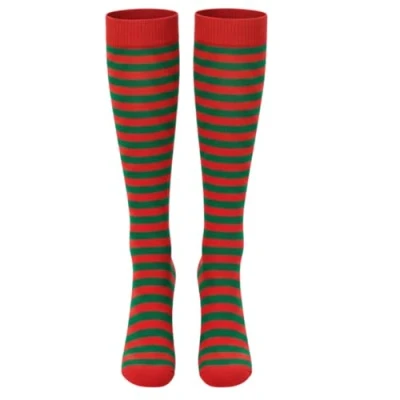 A2Z 4 Kids Girls Boys Striped Stockings Red & Green Halloween Fancy Dress Accessory Over Knee Socks Soft Stretchy Polyester Witch Clown Pirate Theme Wear for 14 Years