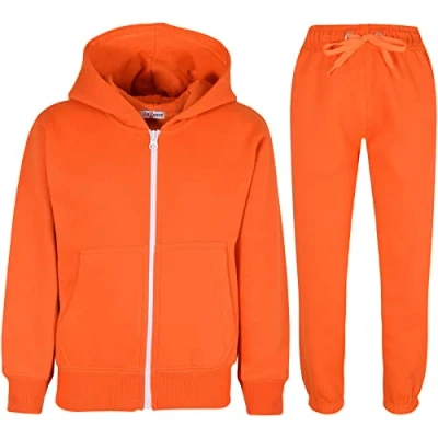 A2Z 4 Kids Girls Boys Tracksuit Plain Camouflage Fleece Hooded T.S Orange 11 12
