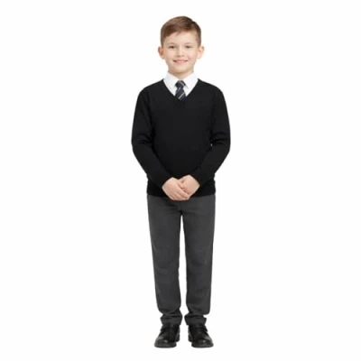 A2Z 4 Kids Girls Boys Unisex Club Scouts School Uniform V Neck Jumper Black 11 12
