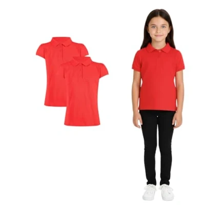 A2Z 4 Kids Girls Plain Shirts Summer Tank Top and Tees Polo Shirt Red 2 Pack 15 16