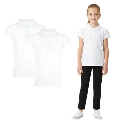 A2Z 4 Kids Girls Plain Shirts Summer Tank Top and Tees Polo Shirt White 2 Pack 15 16