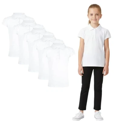 A2Z 4 Kids Girls Plain Shirts Summer Tank Top and Tees Polo Shirt White 5 Pack 15 16
