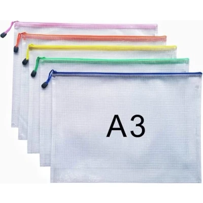 Size: A3 Quantity: 5Pack, 5 Colors , each color 1pcs Extra Thick Version weighs 65g each, stronger than those normal ones Very thick to well keep your art works. Ideal for other filing, storage and presentation Perfect size for A3 document;. The Bag Size is 430mm*310mm, for your reference : A3 size is 420mmx 297mm, so enough space for any A3 document. Waterproof surface, hundreds of uses in office, home and school