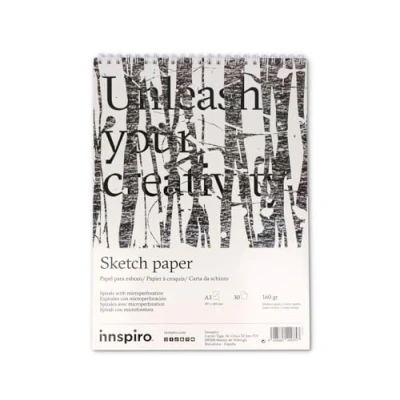 Perfect sketch paper for students, beginners, hobbyists and professionals who want to perfect their dry techniques. Ideal for drawing, charcoal, graphite, chalk, colored pencils and many more. The paper is glued on all four sides to prevent unwanted curls and creases when painting, with micro-perforated sheets for easy tearing. Acid free and optical brightener that gives you archival quality and non-yellowing to preserve your work in the most optimal condition. High volume, fine texture paper that is lightweight and withstands pressure allowing for repeated work and erasing. A3 pad with 30 pages of 160 g. Medium Grain