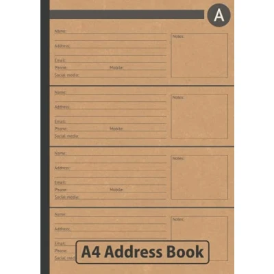 A4 Address Book: Alphabetical (A Z) with 480 Entry Spaces Name, Address, Email, Phone, Mobile, Social Media, Notes