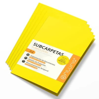 A4 CARDBOARD SUBFOLDERS: The A4 (210x297mm) coloured 180g cardboard subfolders are ideal for keeping your documents organized inside cardboard folders, file folders, and office filing cabinets, facilitating sorting and quick access to important information. COLOR CLASSIFICATION: Subfolders available in a variety of colors, allow you to easily differentiate between different categories of documents, functioning as classifier folders within your A4 filing folders and portfolios. PROTECTION AND DURABILITY - With a thickness of 180g, these cardstock subfolders offer extra protection to your documents, especially when used as dividers inside A4 folders or cardboard sorter folders. VERSATILITY OF USE - Ideal for use in filing folders and office filing cabinets, these A4 cardstock subfolders are an excellent choice for organizing important documents around the home, such as bills, contracts or school assignments. UNIVERSAL COMPATIBILITY - A4 cardstock subfolders are compatible with any A4 file cabinet or file folder, helping you keep your documents tidy in any folder or file cabinet, both at home and in the office.