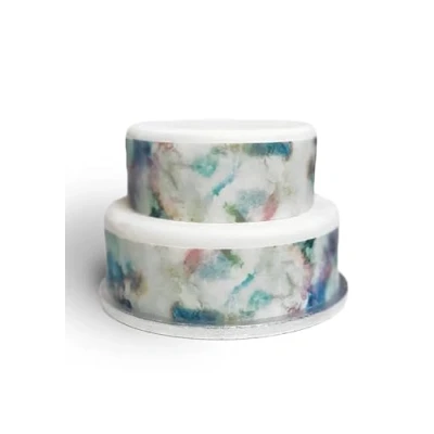 A4 Edible Decor Icing Sheet Pastel Marble Effect Border Ribbon Cake Topper Decoration Great for larger cakes