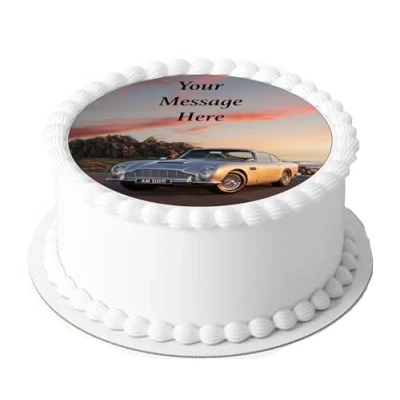 A4 Edible Decor Icing Sheet PERSONALISED Aston Martin Car 7 8" Circle Cake Topper Decoration Great for larger cakes