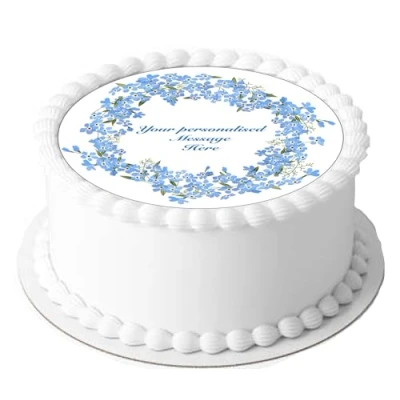 A4 Edible Decor Icing Sheet PERSONALISED Blue Flower Forget Me Not Design 7 8" Circle Cake Topper Decoration Great for larger cakes