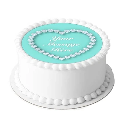 A4 Edible Decor Icing Sheet PERSONALISED Blue with Diamonds Heart Shaped 7 8" Circle Cake Topper Decoration Great for larger cakes