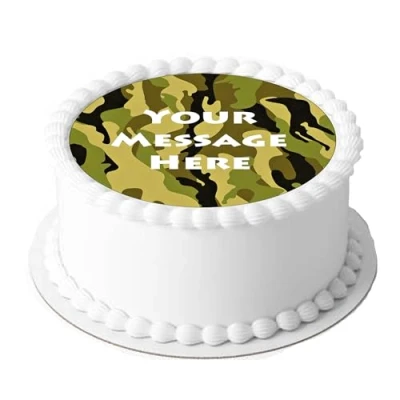 A4 Edible Decor Icing Sheet PERSONALISED Camouflage Design 7 8" Circle Cake Topper Decoration Great for larger cakes