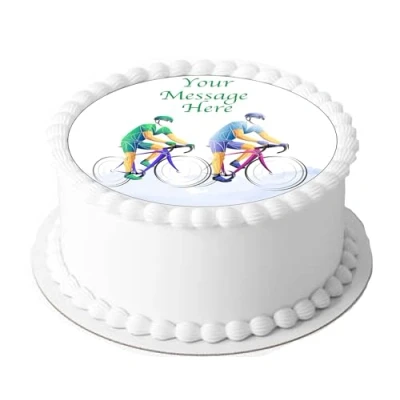 A4 Edible Decor Icing Sheet PERSONALISED Cycling Cycle Bike Sport 7 8" Circle Cake Topper Decoration Great for larger cakes