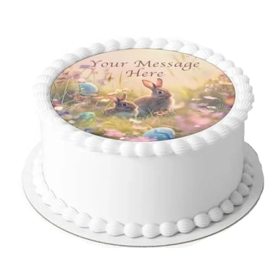 A4 Edible Decor Icing Sheet PERSONALISED Easter Bunny Egg Themed 7 8" Circle Cake Topper Decoration Great for larger cakes