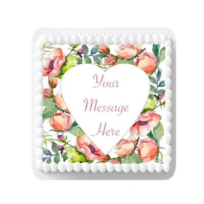 A4 Edible Decor Icing Sheet PERSONALISED Flower Heart Design 7 8" SQUARE Cake Topper Decoration Great for larger cakes
