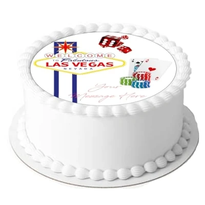 A4 Edible Decor Icing Sheet PERSONALISED Las Vegas Casino Gambling 7 8" Circle Cake Topper Decoration Great for larger cakes