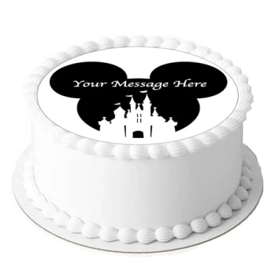 A4 Edible Decor Icing Sheet PERSONALISED Minnie Mickey Mouse Castle Themed 7 8" Circle Cake Topper Decoration Great for larger cakes