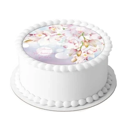A4 Edible Decor Icing Sheet PERSONALISED Orchid Tropical Flower 7 8" Circle Cake Topper Decoration Great for larger cakes