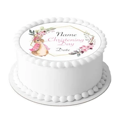 A4 Edible Decor Icing Sheet PERSONALISED Pink Christening Girl 7 8" Circle Cake Topper Decoration Great for larger cakes