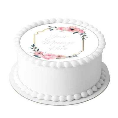 A4 Edible Decor Icing Sheet PERSONALISED Pink Floral Frame 7 8" Circle Cake Topper Decoration Great for larger cakes