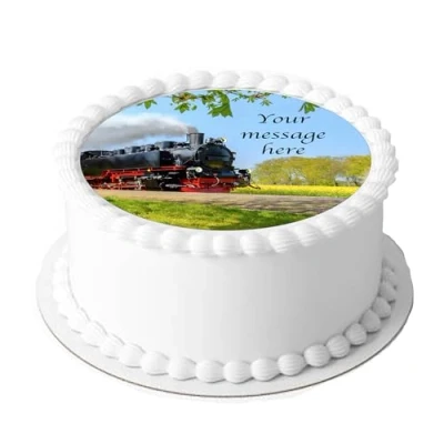 A4 Edible Decor Icing Sheet PERSONALISED Steam Train Transport 7 8" Circle Cake Topper Decoration Great for larger cakes