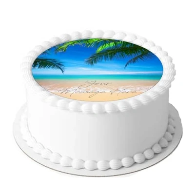 A4 Edible Decor Icing Sheet PERSONALISED Tropical Beach Holiday 7 8" Circle Cake Topper Decoration Great for larger cakes