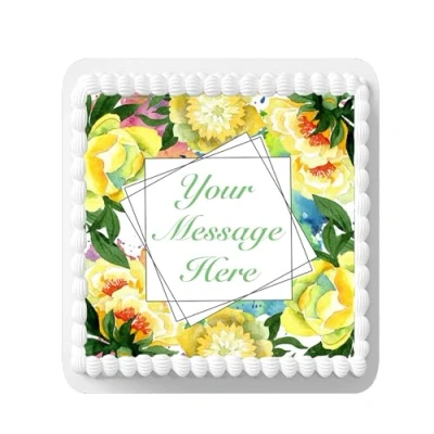 A4 Edible Decor Icing Sheet PERSONALISED Yellow Flower Design 7 8" SQUARE Cake Topper Decoration Great for larger cakes