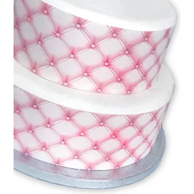 A4 Edible Decor Icing Sheet PINK Cushion Effect Border Ribbon Cake Topper Decoration Great for larger cakes