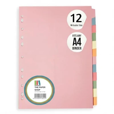 DURABLE AND LONG LASTING - A4 Subject Dividers are made form Manilla Card to give a quality finish. MULTI-PUNCHED - Our A4 File Dividers are machine punched to fit all of A4 Folders (Portrait Only) 12 TABS - These are 12 Part card dividers, perfect for months of the year or anything else. A4 Divider - Perfect for all your organisation requirements THE PAPER SHOP is a TRADEMARK. Saving you time and money on A4 File Dividers.