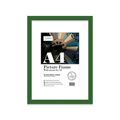A4 Green Picture Frame With White Mount for A5 (14.8 x 21cm 5.8 8.3in) Print, Photo, or Poster. Portrait and Horizontal Wall Hooks/kickstand Art Display