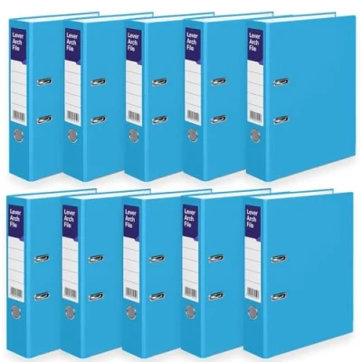 A4 Lever Arch Files for Paperwork, Metal Thumb Ring, Archive Document Folder Large Ring Binders Office, School & Home Filing (Blue, Pack of 10)