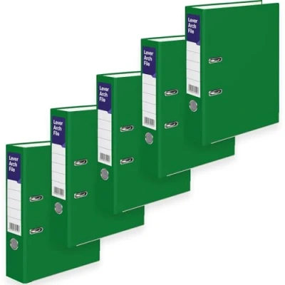 A4 Lever Arch Files for Paperwork, Metal Thumb Ring, Archive Document Folder Large Ring Binders Office, School & Home Filing (Green, Pack of 5)