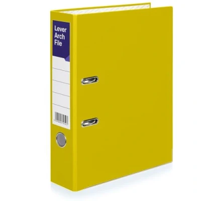 A4 Lever Arch Files for Paperwork, Metal Thumb Ring, Archive Document Folder Large Ring Binders Office, School & Home Filing (Yellow, Pack of 1)