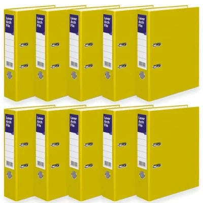 A4 Lever Arch Files for Paperwork, Metal Thumb Ring, Archive Document Folder Large Ring Binders Office, School & Home Filing (Yellow, Pack of 10)