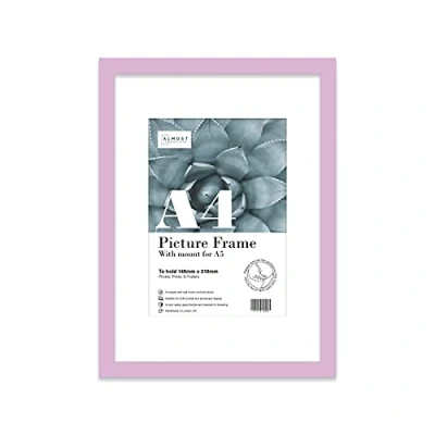 A4 Lilac Picture Frame With White Mount for A5 (14.8 x 21cm 5.8 8.3in) Print, Photo, or Poster. Portrait and Horizontal Wall Hooks/kickstand Art Display