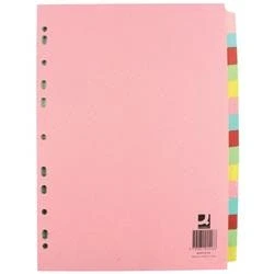 15-part tabbed dividers. Ideal for office and home filing. Multicoloured so you can colour-code sections. Tabs have been left blank for you to customise. Punched to fit all standard A4 ring binders or lever arch files. 100% recycled 160gsm card.