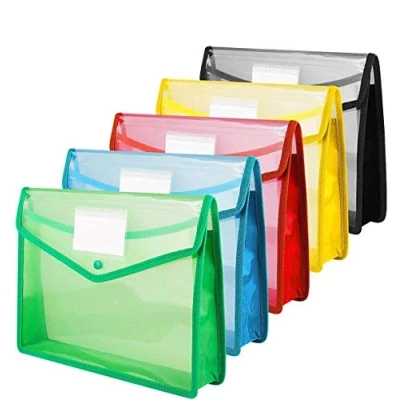 A4 Plastic Wallet Folders with Popper ASelected Document Pockets Button Envelope Wallets Files for School Office Home Pack of 5 Red Blue Yellow Green Black