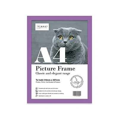A4 Purple Picture Frame, Fits (21 x 29.7cm 8.3 11.7in) Poster, Photo, or Print. Portrait and Horizontal Wall Hooks/Kickstand Art Display