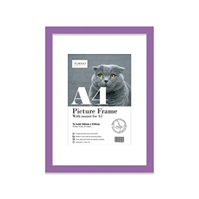 A4 Purple Picture Frame With White Mount for A5 (14.8 x 21cm 5.8 8.3in) Print, Photo, or Poster. Portrait and Horizontal Wall Hooks/kickstand Art Display