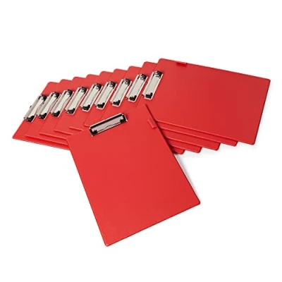 A4 Red Clipboard with Pen Loop and Retractable Hanging Clip Pack 10