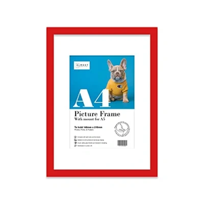 A4 Red Picture Frame With White Mount for A5 (14.8 x 21cm 5.8 8.3in) Print, Photo, or Poster. Portrait and Horizontal Wall Hooks/kickstand Art Display