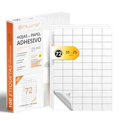 Printable Adhesive Paper: A4 sheets of adhesive labels, A4 paper size. Each sheet measures 210mm x 297mm and contains 72 labels measuring 25mm x 35mm to print your best creations. 100 sheets, 7200 stickers. Compatible with Printers: Our stickers are compatible with any laser printer or the various inkjet printer models that support A4. Personalised Labels - Create custom labels to identify jars in the kitchen, the contents of your moving boxes, pallets in your storage or the boxes you ship. The limit is your imagination. Papier A4 Print Sticker - Create fun sticky notes, stickers for little ones, surprise the world with your own personalised labels or enjoy creating ingenious sticky labels. A4 Adhesive Labels - Compatibility with a variety of printers, easy printing, reliable adhesion, long-lasting quality, wide range of uses from sending to organizing documents.
