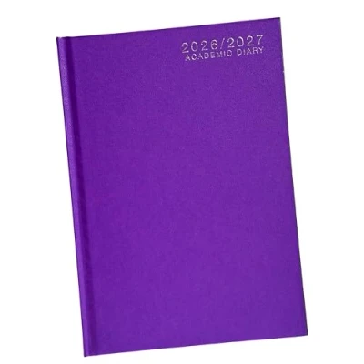 A5 Academic Diary 2026-2027 Week to View Hardback Case Bound - PURPLE A5 Week to view Layout Additional information Pages Mid year Runs from August 2026 to July 2027 Ribon marker strong binding for long lasting Foil stamp on fron and on spine perfect for teachers and student diary