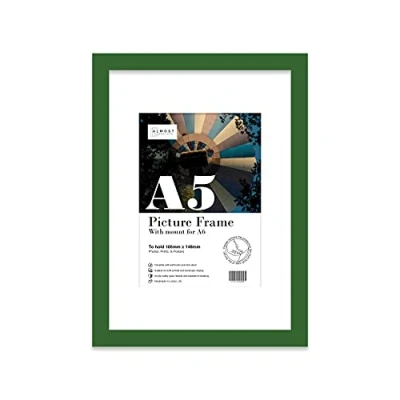 A5 Green Picture Frame With White Mount for A6 (10.5 x 14.8cm 4.1 5.8in) Print, Photo, or Poster. Portrait and Horizontal Wall Hooks/kickstand Art Display