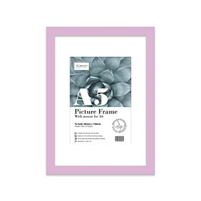 A5 Lilac Picture Frame With White Mount for A6 (10.5 x 14.8cm 4.1 5.8in) Print, Photo, or Poster. Portrait and Horizontal Wall Hooks/kickstand Art Display