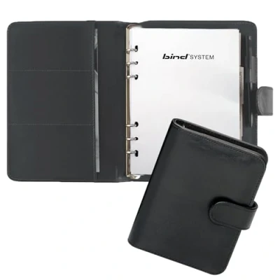 High-quality branded product from Bind System Made from FINEtouch imitation leather, in black With press stud closure With system insert, including calendar 1 week = 2 pages Outer dimensions: approx. 18 x 24 x 3.8 cm
