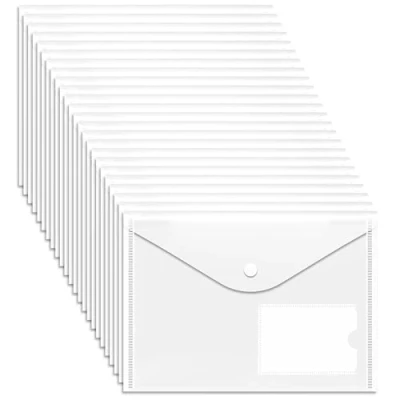 These a5 plastic wallets clear are made of polypropylene material, they are very durable, and the a5 clear wallets feature a press button, which is easy to close the document folder, so help to keep contents secure. The size of document wallets are A5 Size, each clear a5 popper wallets fit a fairly large capacity, it can hold up to 150 sheets A5 papers. The plastic wallets a5 is transparent, can help you to find out the file what you want easily. and the a5 plastic wallets provide a card slot, which can keep your business card. The a5 document wallet is for the secure storage of your documents at the office, home or school. Package include 24 pieces a5 popper wallet. A5 Plastic folders wallets is perfect for Storing papers, memos, photos, letters, and receipts at home, the office, school.