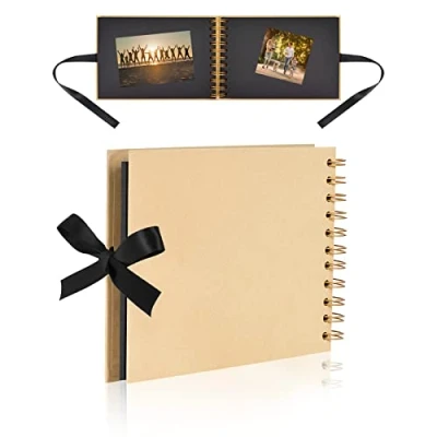 🗒【A5 Scrapbook】The 21.5 x 15 cm 60-page / 30-sheet Yellow Shell Kraft Black Blank Scrapbook is durable and suitable for long-term storage to make good memories for you and your loved ones, designed with ribbon closure, hard cover. 🗒【Exquisite Binding】Bi-metal coil binding, more durable without falling pages. It can be tiled 180 degrees or rotated 360 degrees, which is convenient for turning pages; the interior is made of thick and smooth kraft paper, Easy to write. 🗒【Designed by Yourself】You can design the cover and inside pages of your photo album scrapbook. More album stickers can make your album more colorful. Get creative now! 🗒【Your story is written by you】Each moment of growth is a treasured memory. Each photo you take is worthy of permanent preservation. 🗒【Multi-scene use】It can be used as travel records, life records, wedding albums, etc. Also the perfect gift for Valentine's Day, Anniversary, Christmas, Mother's Day, Father's Day, Graduation, Birthday or Wedding etc.